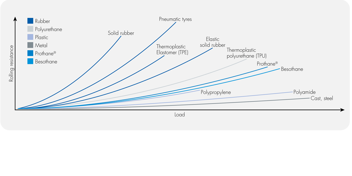 La résistance au démarrage et au roulement sont des facteurs déterminants pour choisir la roue adaptée à votre application. Le choix du type de roue et de bandage influence non seulement la mobilité de votre équipement, mais aussi la durée de vie des roues et les coûts d’exploitation. Selon le domaine d’utilisation et les exigences liées au chargement, Pegasus propose différents types de roues et de bandages conçus pour minimiser la résistance au démarrage et optimiser la résistance au roulement.