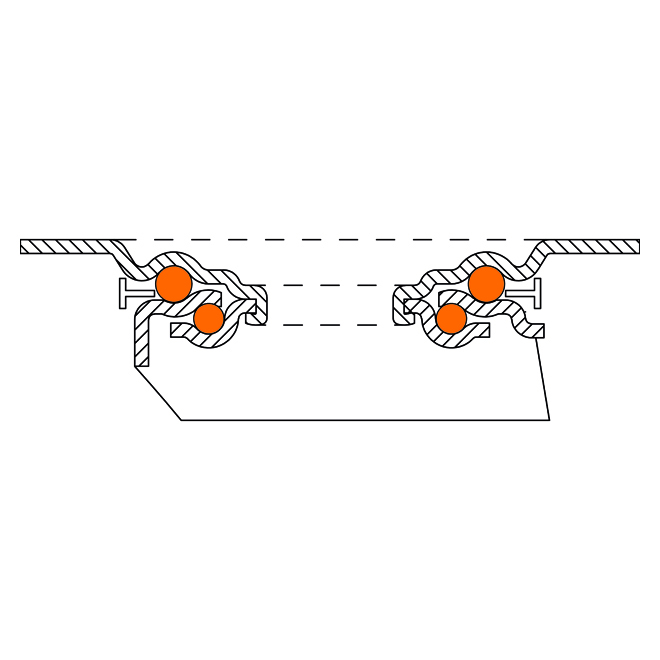 - couronne tournante à double roulement dans la tête de fourche